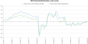 The results of the WIFO-Konjunkturtest (business cycle survey) show a slight decline in business sentiment in January. The WIFO Business Climate Index stood at –0.4 points (seasonally adjusted), 0.9 points below the December figure. Overall, both assessments of the current situation and economic expectations declined slightly. However, there are slight differences across sectors. The downturn is mainly due to the deterioration in economic sentiment in the service sector and industry. Despite a slight improvement in assessments of the current situation, economic sentiment in the construction industry remains subdued, while it improved in the retail sector.