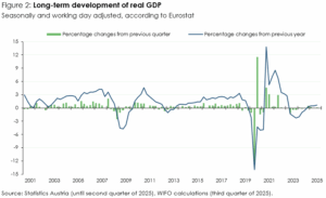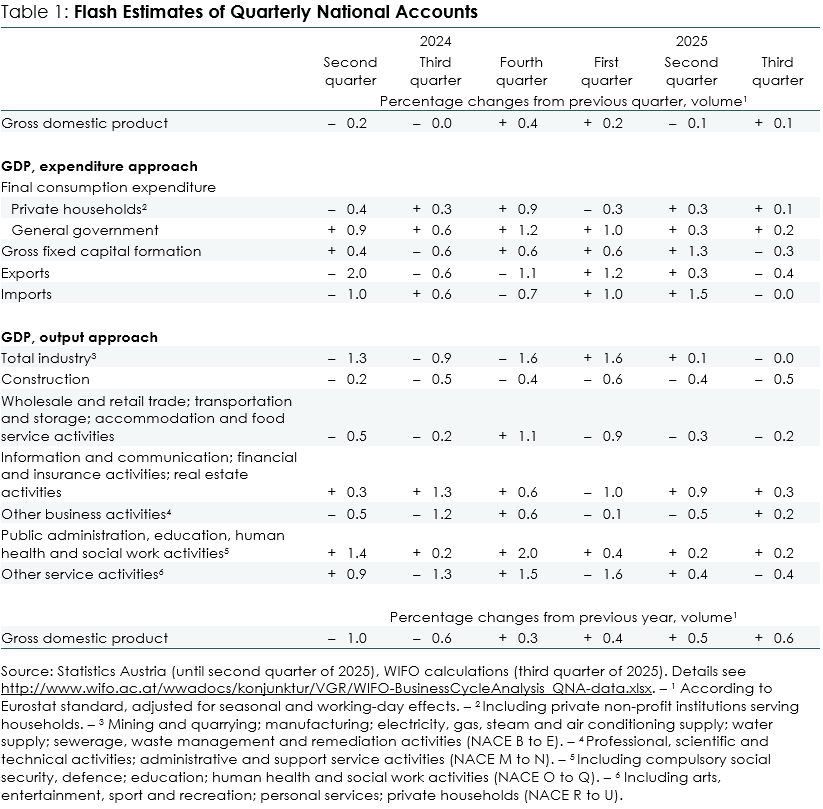 The WIFO Flash Estimate is a first estimate for the past quarter and is based on the Quarterly National Accounts of Statistics Austria, which were published on 30 September 2025 up to and including the second quarter of 2025.