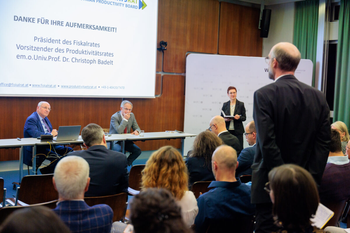 In his presentation, Badelt pointed out the considerable additional burdens that are to be expected for public budgets in the long term and that can only be offset by far-reaching structural reforms in the public sector. He also said that the tax structure needed to be rethought in light of a possible decline in the importance of earned income – for example, by shifting the tax burden away from earned income and towards inheritance or technology companies.