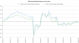 The index of current assessments of the overall economy fell by 2.1 points to –1.9 points in March, placing it below the zero line that separates positive from negative assessments. In the manufacturing sector, the situation index fell (–1.6 points) and, at –7.4 points, was once again deep in the sceptical range. In the construction sector, by contrast, the situation index rose (+3.0 points), but remained below the zero line at –2.6 points. In the service sectors, the situation index lost momentum (–2.9 points), but remained just within positive territory at 1.1 points. The retail sector also saw a decline in the current situation index (–1.7 points), which stood at 0.1 points on the zero line.