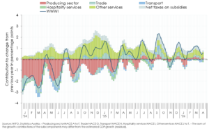1 The inclusion of newly published and revised monthly data, which must be taken into account when estimating the WWWI, led to a revision of the WWWI for GDP. Notable supply-side WWWI revisions occurred particularly in the areas of goods production (NACE 2008, sections A to E), construction (section F), accommodation and food service activities (section I), trade (section G) and remaining market-related services (sections J to N).