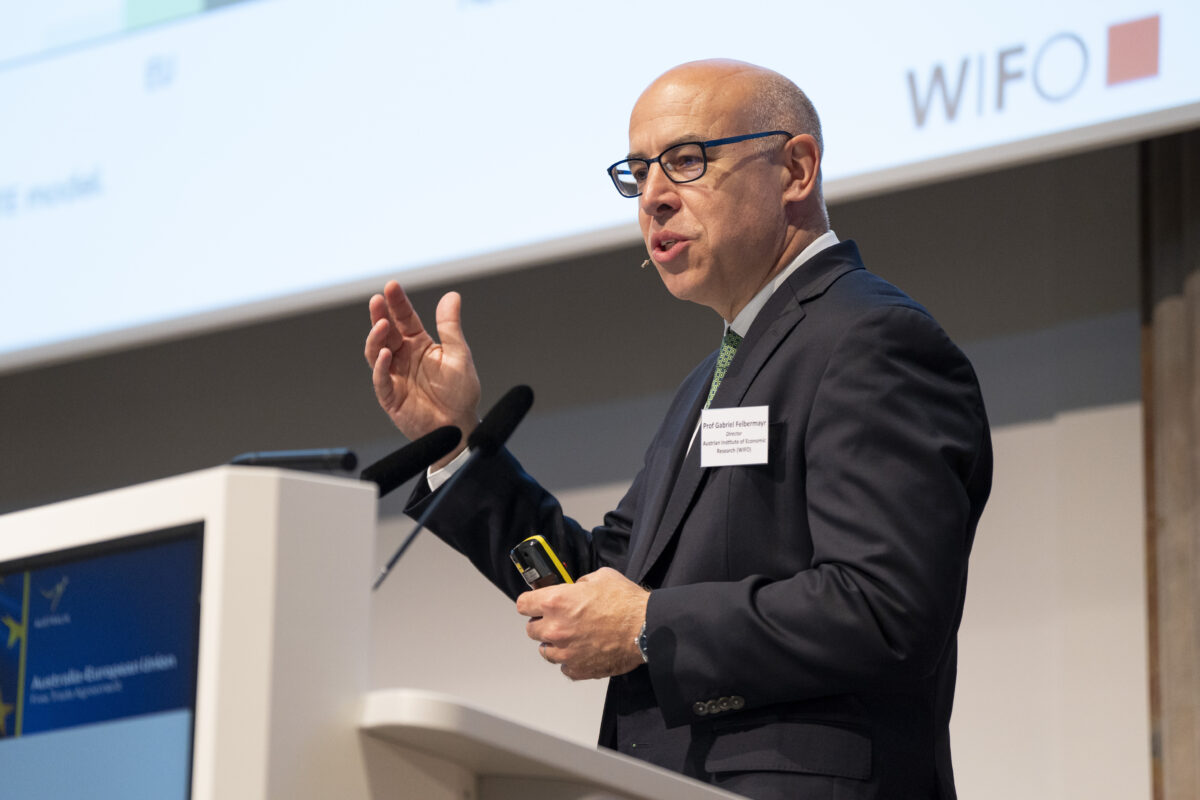 150 Mio. € betragen", so WIFO-Direktor Gabriel Felbermayr am 28. April 2026 bei einer Kooperationsveranstaltung der Australischen Botschaft in Wien, der Oesterreichischen Nationalbank (OeNB), dem Bundesministerium für Wirtschaft, Energie und Tourismus (BMWET), der Europäischen Kommission, dem Österreichischen Institut für Wirtschaftsforschung (WIFO) sowie der Wirtschaftskammer Österreich (WKO).