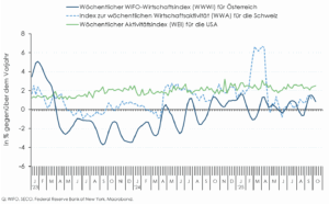 Der Wöchentliche WIFO-Wirtschaftsindex (WWWI) schätzt die realwirtschaftliche Aktivität der österreichischen Volkswirtschaft auf wöchentlicher und monatlicher Basis. Er verwendet wöchentliche, monatliche und vierteljährliche Zeitreihen, um wöchentliche und monatliche Indikatoren für das reale BIP und 18 BIP-Teilaggregate (Verwendungsseite 8, Produktionsseite 10) der vierteljährlichen Volkswirtschaftlichen Gesamtrechnung zu schätzen.