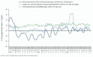 Der Wöchentliche WIFO-Wirtschaftsindex (WWWI) schätzt die realwirtschaftliche Aktivität der österreichischen Volkswirtschaft auf wöchentlicher und monatlicher Basis. Er verwendet wöchentliche, monatliche und vierteljährliche Zeitreihen, um wöchentliche und monatliche Indikatoren für das reale BIP und 18 BIP-Teilaggregate (Verwendungsseite 8, Produktionsseite 10) der vierteljährlichen Volkswirtschaftlichen Gesamtrechnung zu schätzen.