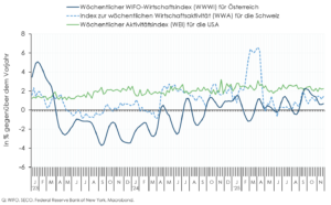 Wöchentliche Wirtschaftsaktivität, WWWI – Entstehung und Verwendung Der WWWI befindet sich in ständiger Bearbeitung; er wird laufend überprüft und nach Verfügbarkeit mit neuen und zusätzlichen wöchentlichen Datenreihen erweitert. Der WWWI ist keine offizielle Quartalsschätzung, Prognose o. Ä. des WIFO.